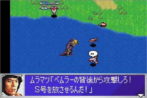 「ウルトラマン版スパロボ」とも言えるゲームボーイアドバンスのゲーム、ウルトラ警備隊モンスターアタックをプレイ中!